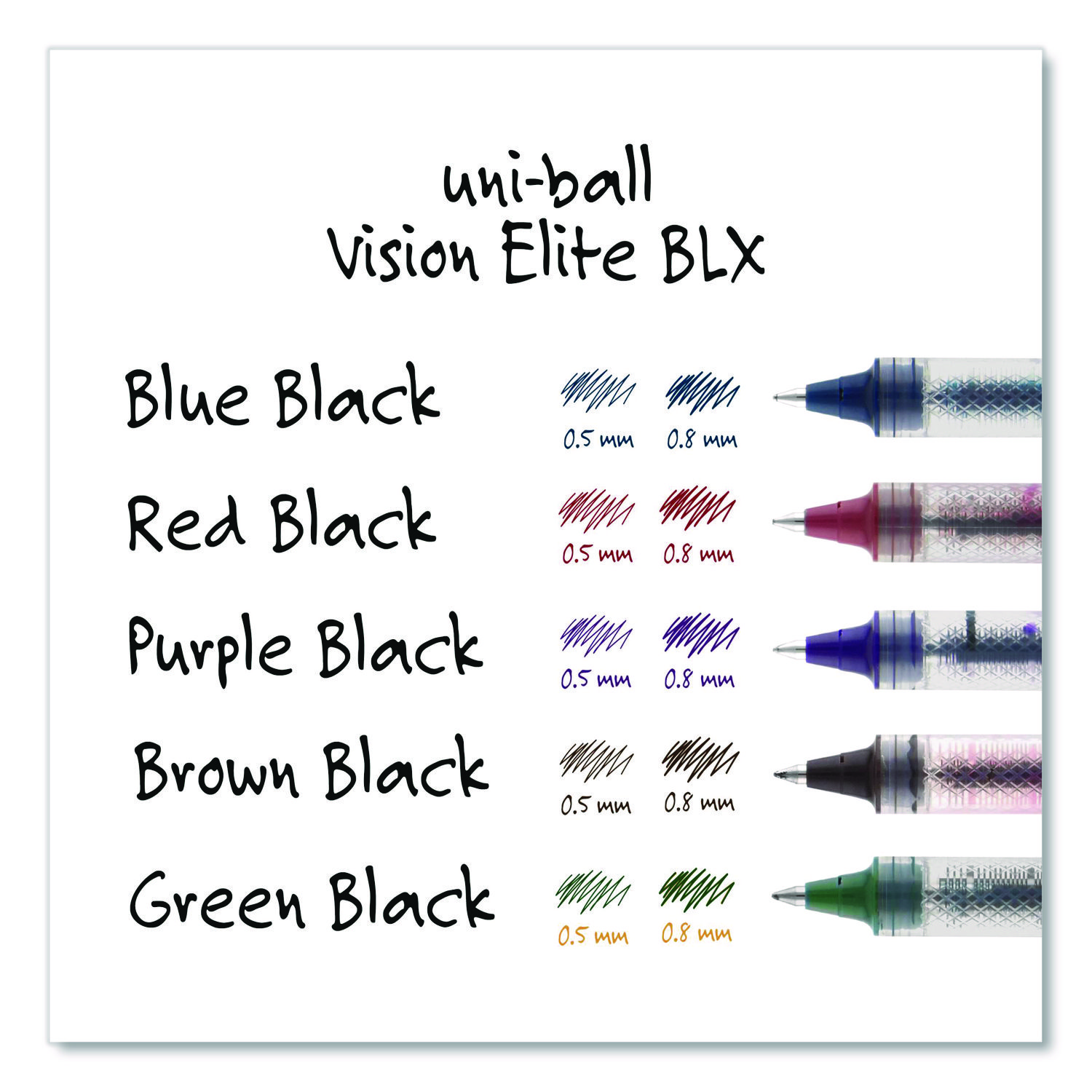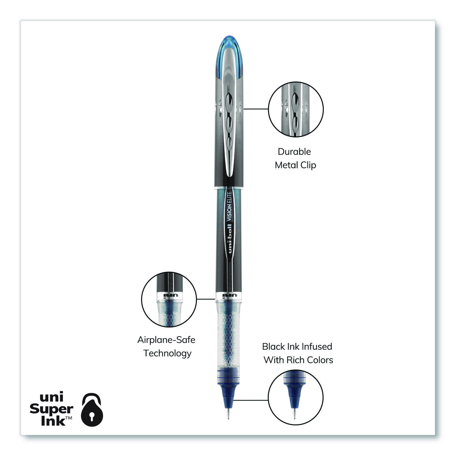 Capture ideas as vividly as you can imagine them with uniball® VISION ELITE™ Rollerball Stick Pens. Featuring a bend-resistant stainless-steel tip and a tungsten carbide rollerball, VISION ELITE™ delivers smooth, intense lines with unparalleled definition. uni Super Ink technology ensures their ink settles deep into paper to provide three-way protection against water, fading and fraud, and exclusive uni-Flow Ink System ensures a consistent, delightfully fluid writing experience, while also providing leak-proof performance during in-flight cabin pressure changes. No matter the altitude, express your signature style with the sleek, modern design and elite performance of uniball® VISION ELITE™ Rollerball Pens. Pen Sub-Brand & Product Family: VISION ELITE™ BLX Series; Pen Type: Rollerball Pen; Pen Style: Stick; Pen Tip Type: Conical.