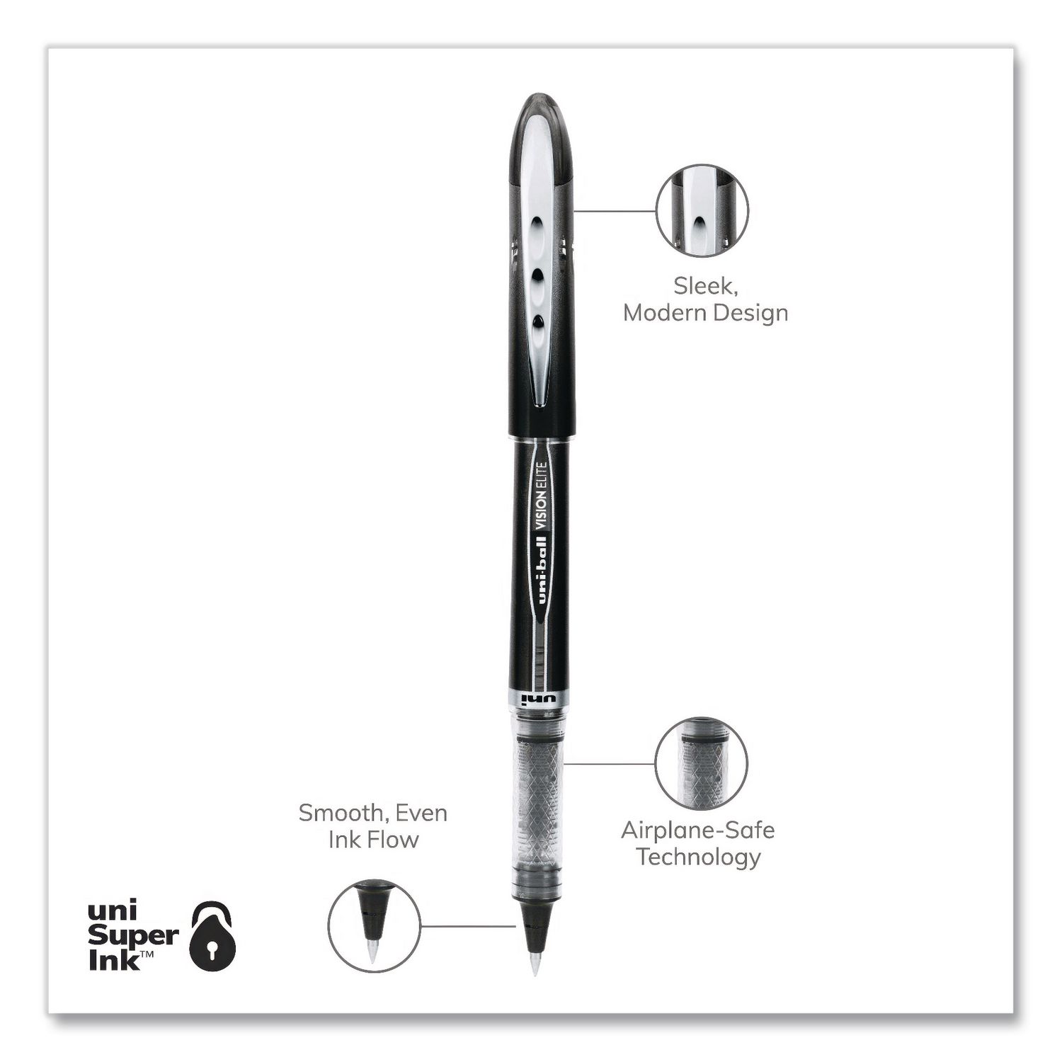 Capture ideas as vividly as you can imagine them with uniball® VISION ELITE™ Rollerball Stick Pens. Featuring a bend-resistant stainless-steel tip and a tungsten carbide rollerball, VISION ELITE™ delivers smooth, intense lines with unparalleled definition. uni Super Ink technology ensures their ink settles deep into paper to provide three-way protection against water, fading and fraud, and exclusive uni-Flow Ink System ensures a consistent, delightfully fluid writing experience, while also providing leak-proof performance during in-flight cabin pressure changes. No matter the altitude, express your signature style with the sleek, modern design and elite performance of uniball® VISION ELITE™ Rollerball Pens. Pen Sub-Brand & Product Family: VISION ELITE™; Pen Type: Rollerball Pen; Pen Style: Stick; Pen Tip Type: Conical.