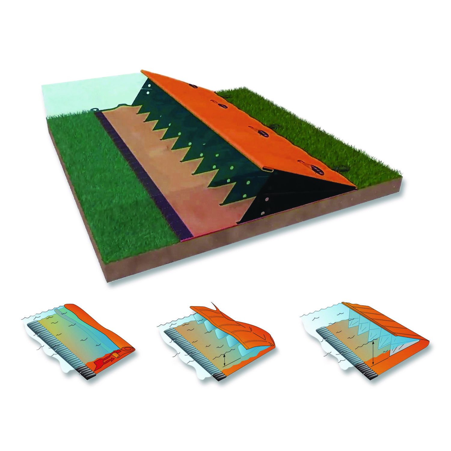 Quick Dam Water Force is a portable self-rising barrier that contains and controls flood water. Simply roll it out in desired location and watch it rise with the flow of oncoming water. Height: 14″; Length: 50 ft; Width: 56″; Color(s): Orange.