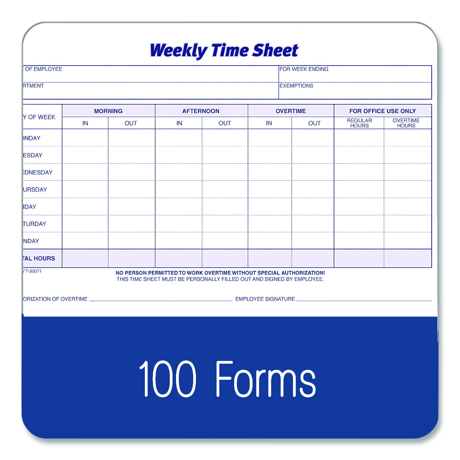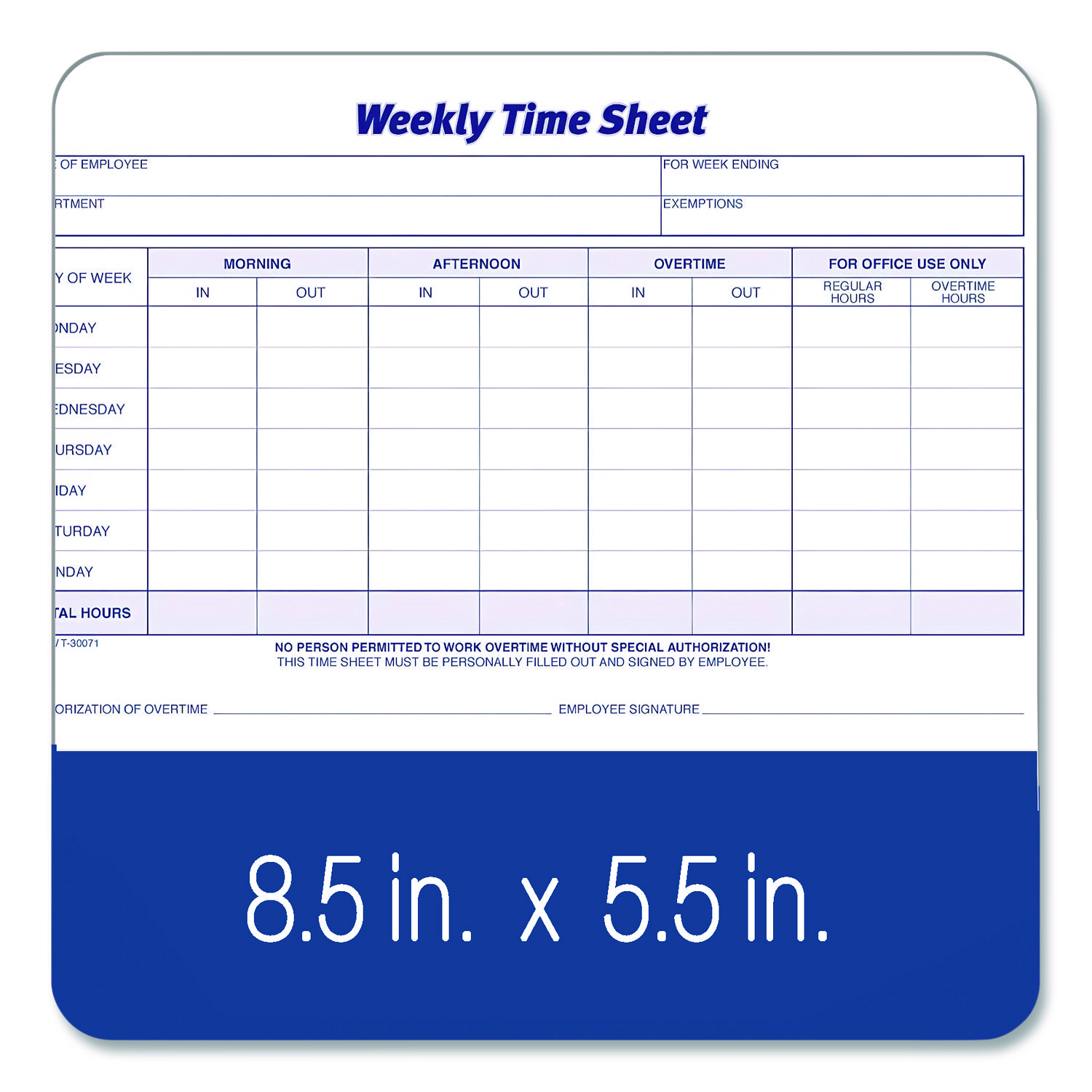 Weekly Time Sheets, Two-Part Carbonless, 8.5 x 5.5, 100 Forms Total