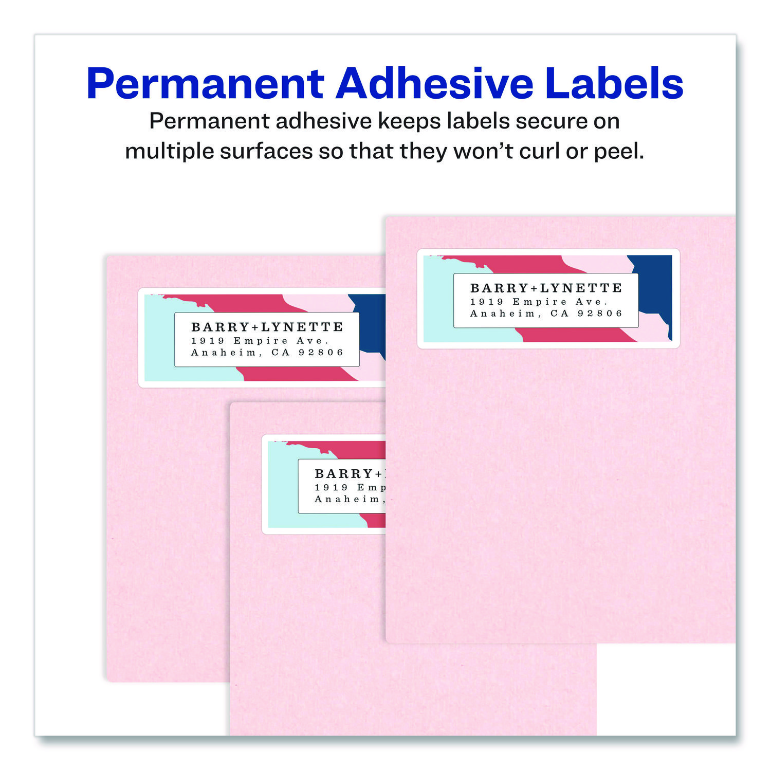 Large bulk pack size perfect for multiple and high-volume mailing projects, labeling bottles, jars, food containers, product branding, event decorations, and more. White Address Labels are great when you want to create professional labels quickly and easily. Sure Feed® technology is designed for a reliable feed through your printer helping prevent misalignments and jams. To easily customize your labels, simply use the free templates and designs from Avery® Design & Print. 8 1/2″ x 11″ sheets, optimized for laser printers. Value Pack—Stock up and save! Shape: Rectangular; Label Size – text: 1 x 2.63; Label Color(s): White; Color Family: White.