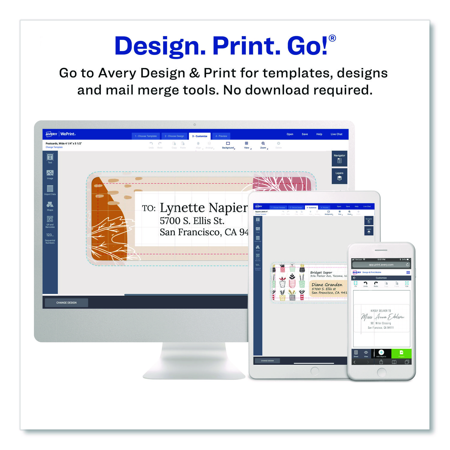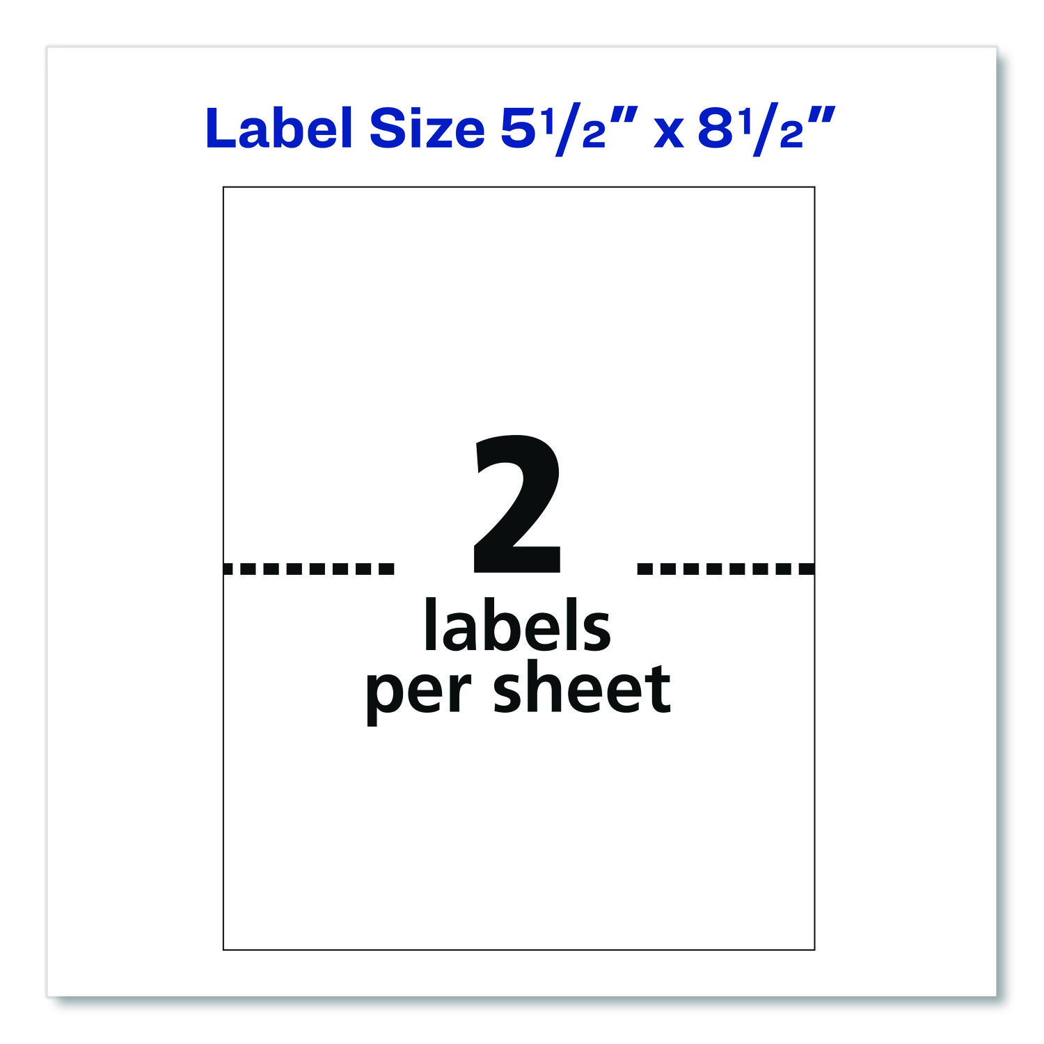 Create professional-looking labels quickly. Bright white labels for sharper print quality are perfect for creating labels for shipping and organizing. Ideal for large labeling projects. Easy to customize with free templates and designs at Avery Design & Print. Shape: Rectangular; Label Size – text: 5.5 x 8.5; Label Color(s): White; Color Family: White.