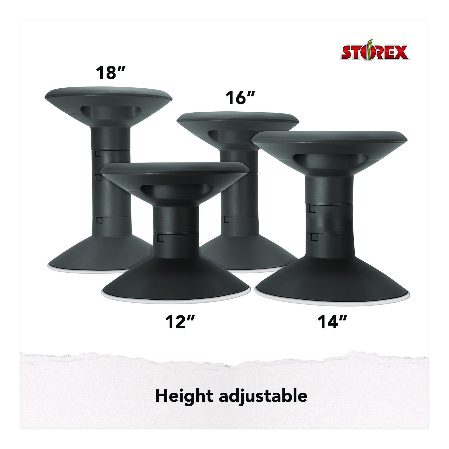 Wiggle Stool, Backless, Supports Up to 250 lbs, 12″ to 18″ Seat Height, Black Seat, Black Base