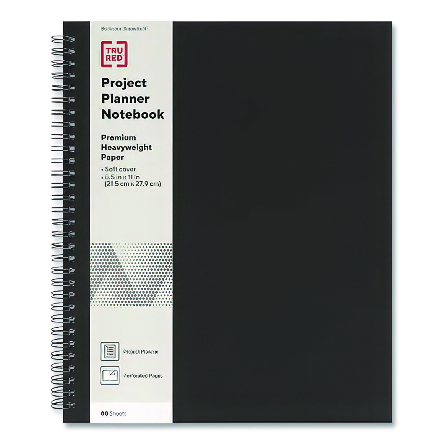 Wirebound Soft-Cover Project-Planning Notebook, Project-Management Format, Black Cover, (80) 11 x 8.5 Sheets