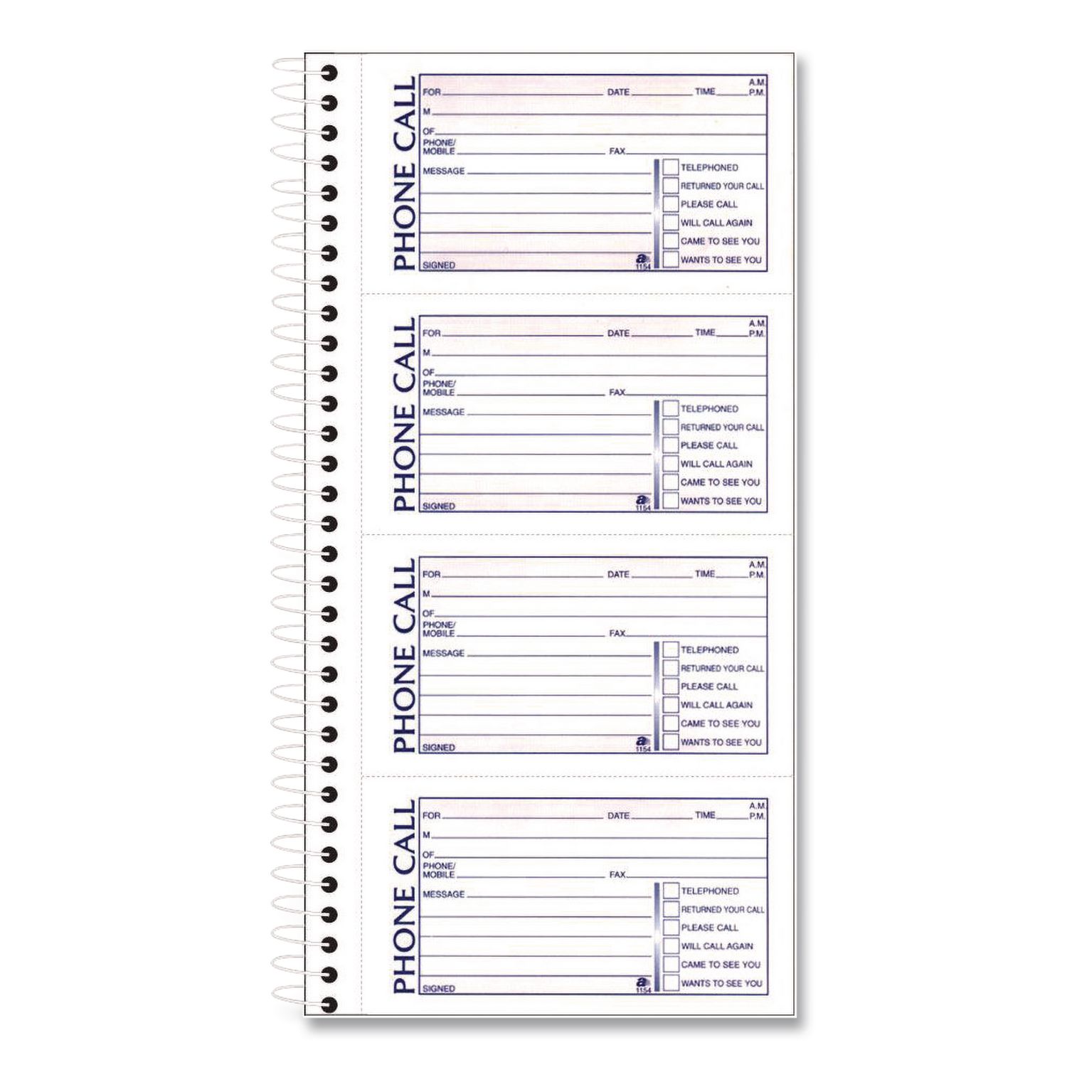 Wirebound Telephone Message Book, Two-Part Carbonless, 4.75 x 2.5, 4 Forms/Sheet, 400 Forms Total, 2/Pack