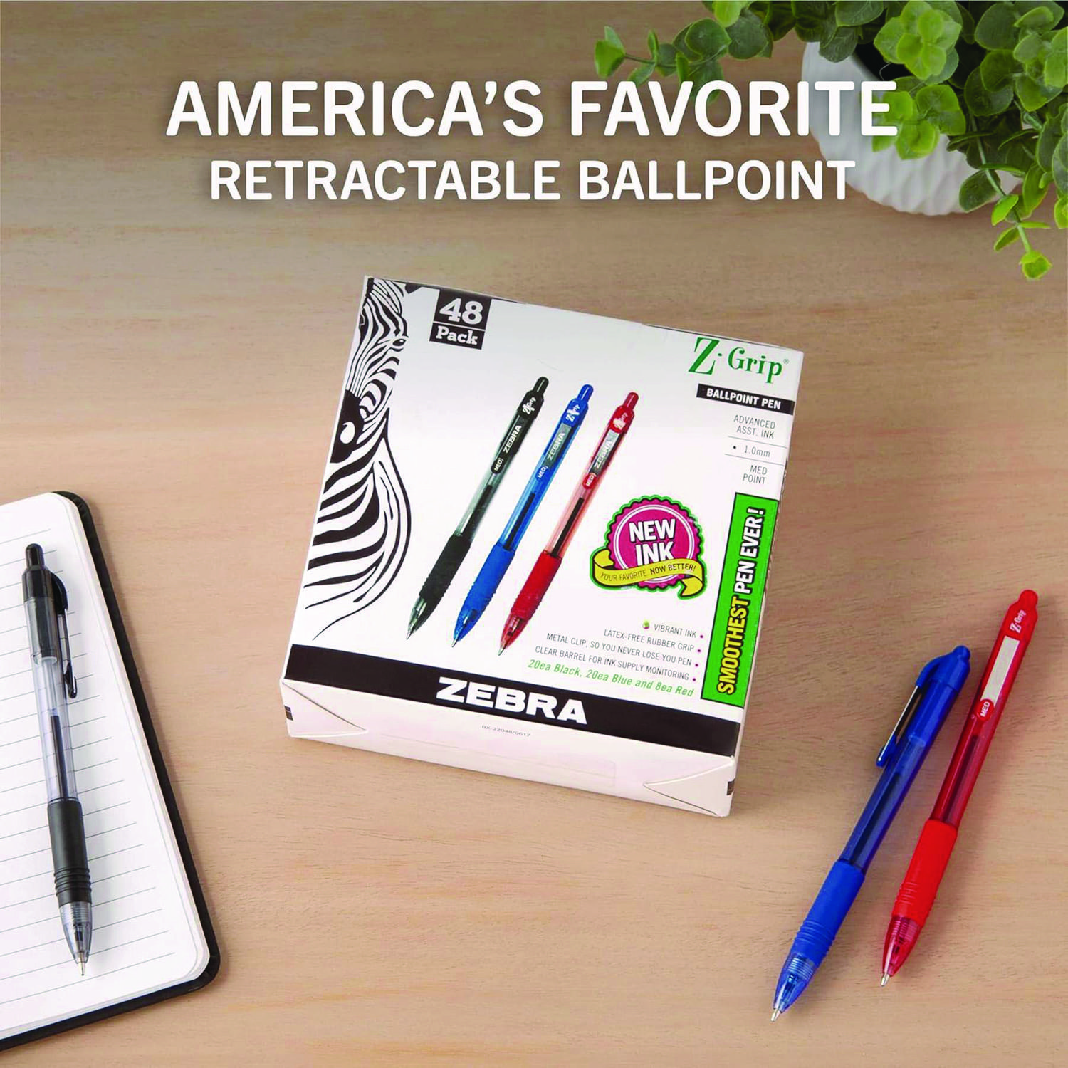 Z-Grip Ballpoint Pen, Retractable, Medium 1 mm, Assorted Ink and Barrel Colors, 48/Pack