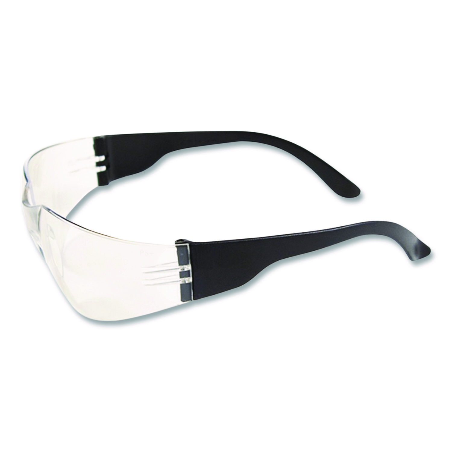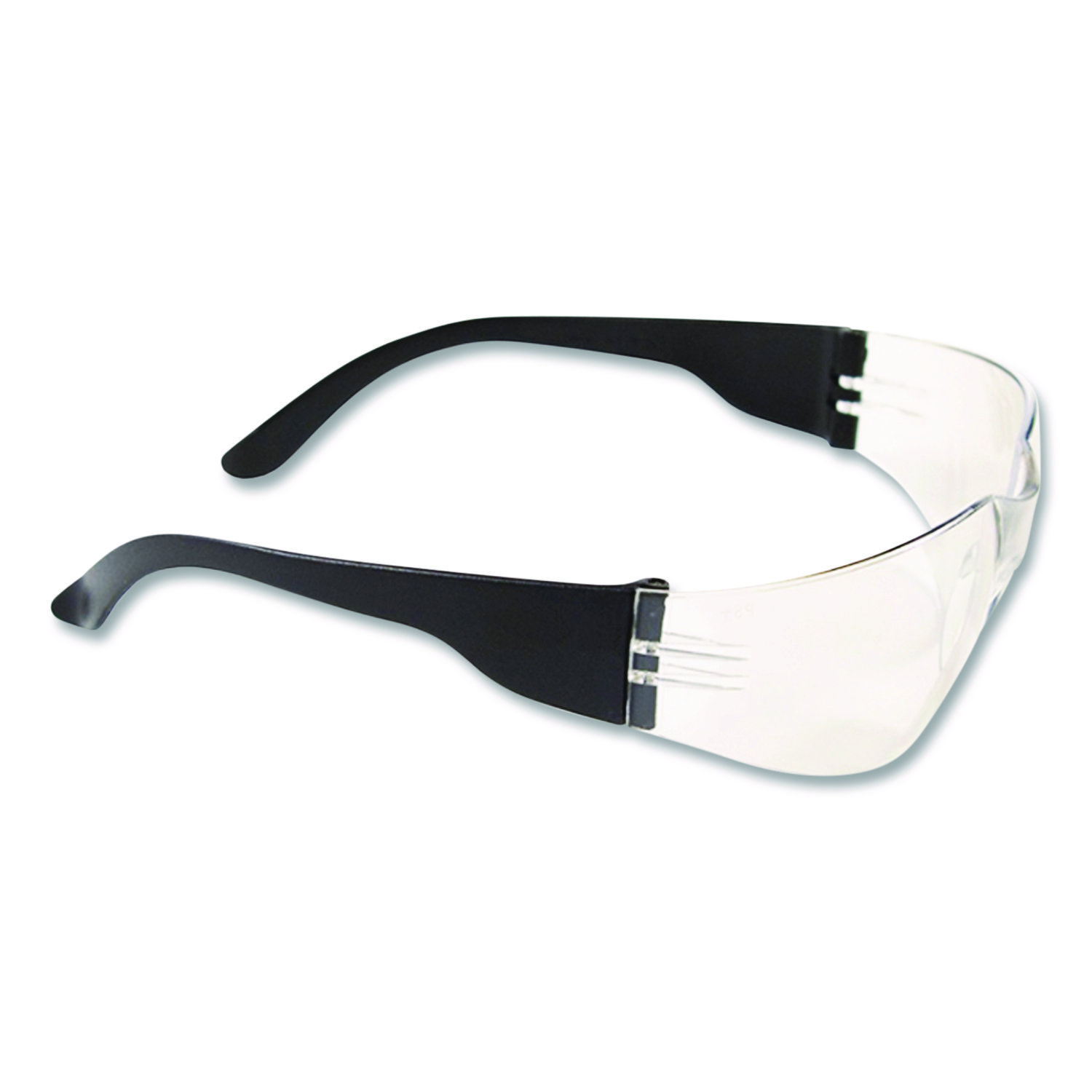 Lightweight, rimless design includes thin, flexible temples to provide a secure fit with all-day user comfort. Molded nose bridge design, extends further out from the lens making them great for wearers with a shallower nose bridge. Polycarbonate lenses provide 99.9% UVA/UVB protection. Safety Glasses Style: Frameless; Frame/Arm Material: Nylon; Lens Style: Single Lens; Lens Color: Clear.